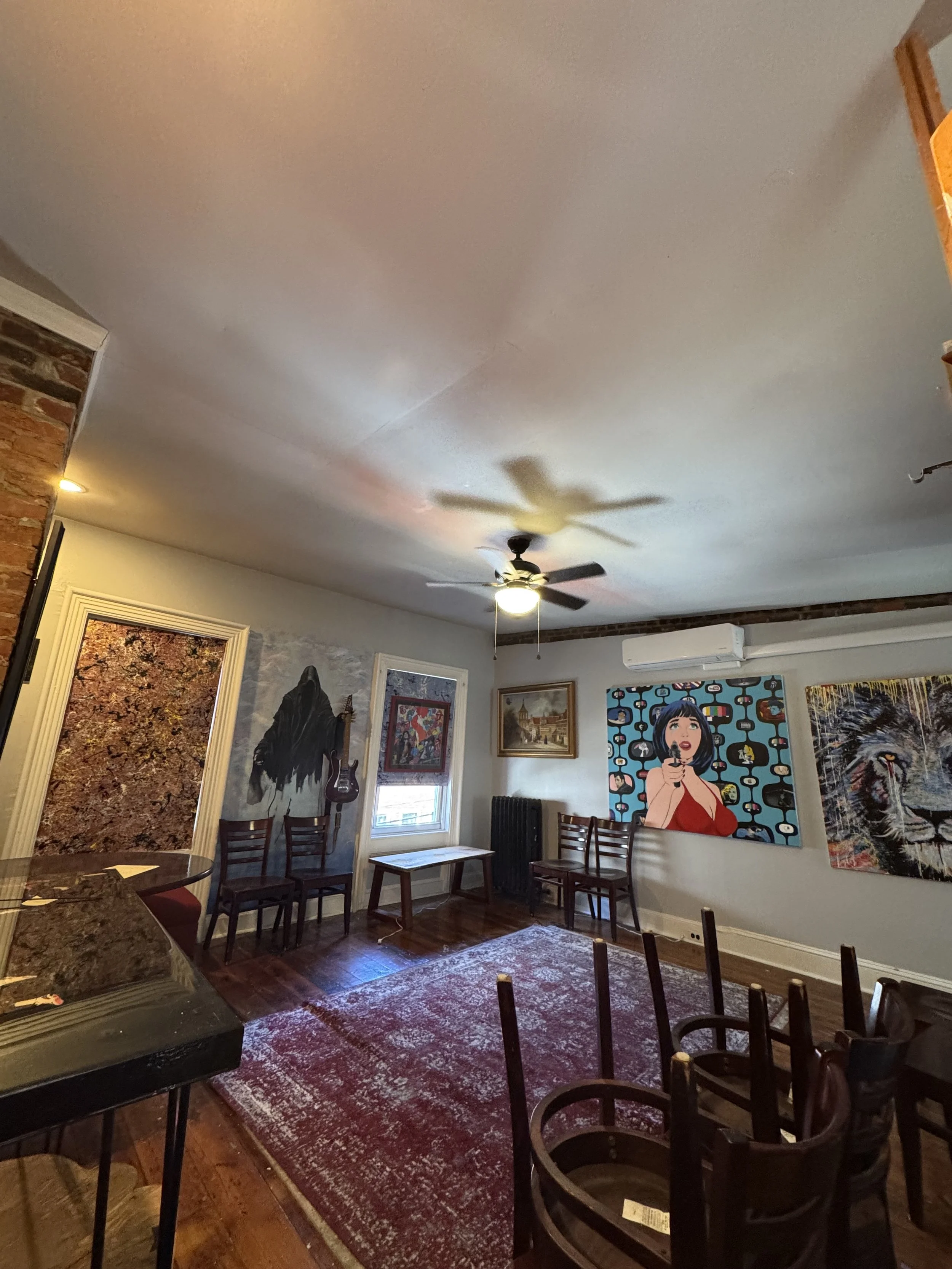 Artists can keep work up for 1 month, this gallery hosts recurring events exposing your work to new customers throughout the month.